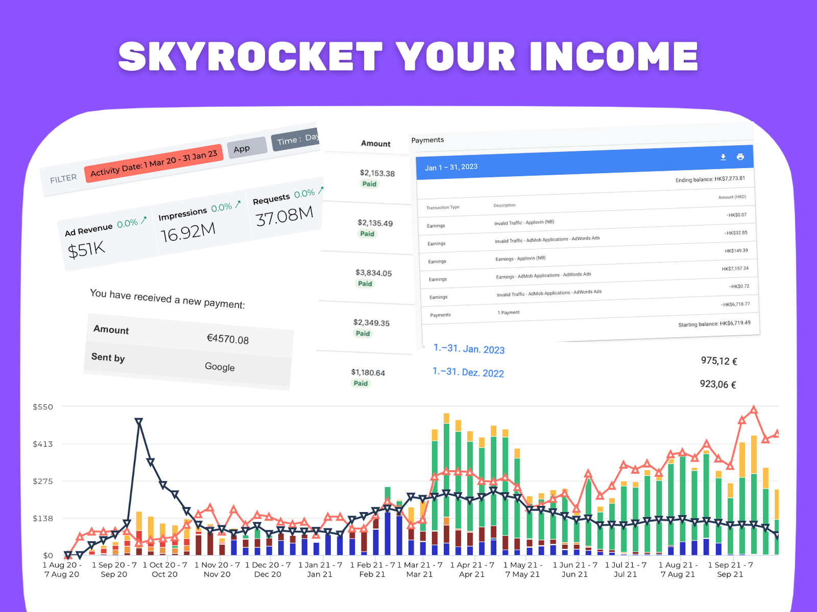 Ultimate Guide on How to Rank and Earn Money with Free iOS & Android Games and Apps within 4 Weeks. No Coding is Required. This eBook is going to explain how I made a lot of money from apps and games, currently earning money on autopilot. The ultimate goal is to not only save you a lot of time and money but also to help you make money on autopilot. What you can expect from the eBook: - Maximize your apps & games revenue - You don’t need coding skills - Rank your app on Google Play and Apple App Store - Find a niche & market research - Create Google Play Developer and Admob Accounts - Avoiding AdMob limits - Do’s and don'ts of game reskinning - How to deal with shadow bans - Learn from my mistakes, avoid bans and account terminations I got hundreds of thousands of ORGANIC installs for iOS and Android, and I will show you how I did it! See by yourself. In the almost 100 pages of this eBook, I cover the following topics: - How to create Google AdMob accounts - How to create multiple Google Play Developer accounts - Warming up AdMob and Google Play Developer accounts - How to avoid getting banned/terminated - How to avoid getting your Android app suspended - Avoid AdMob Limits - Mediation to earn more money - Best Ad Networks - How to rank on Google Play and the Apple App Store - What apps work best on each platform - How to find a niche - How to do keyword research - How to build high-revenue apps - Reskinning and improving games - How to get and make high-quality apps without coding skills - How to monetize games and apps in the best way - Full ASO Guide - How to get app reviews & ratings - Strategy to rank your apps and games - How to analyze your apps and games …and many other topics which are going to help you to earn money on autopilot. That’s not all. I included some bonuses, which are going to save you a lot of time and money. Bonuses: How to use ChatGPT for apps and gamesHow to build backlinks using your appHow to use your app for SEO and improve your website rankingsHuawei AppGallery, Amazon, Samsung GalaxyMobile apps in ChinaHow to make your WebView app look like a native app Pay With Coinbase